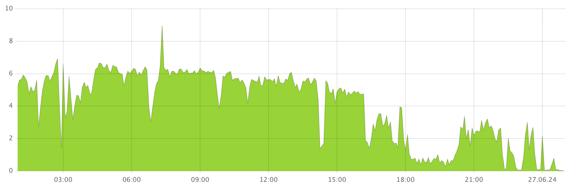 This chart displays the time-series data for the number of tablets moved per second.